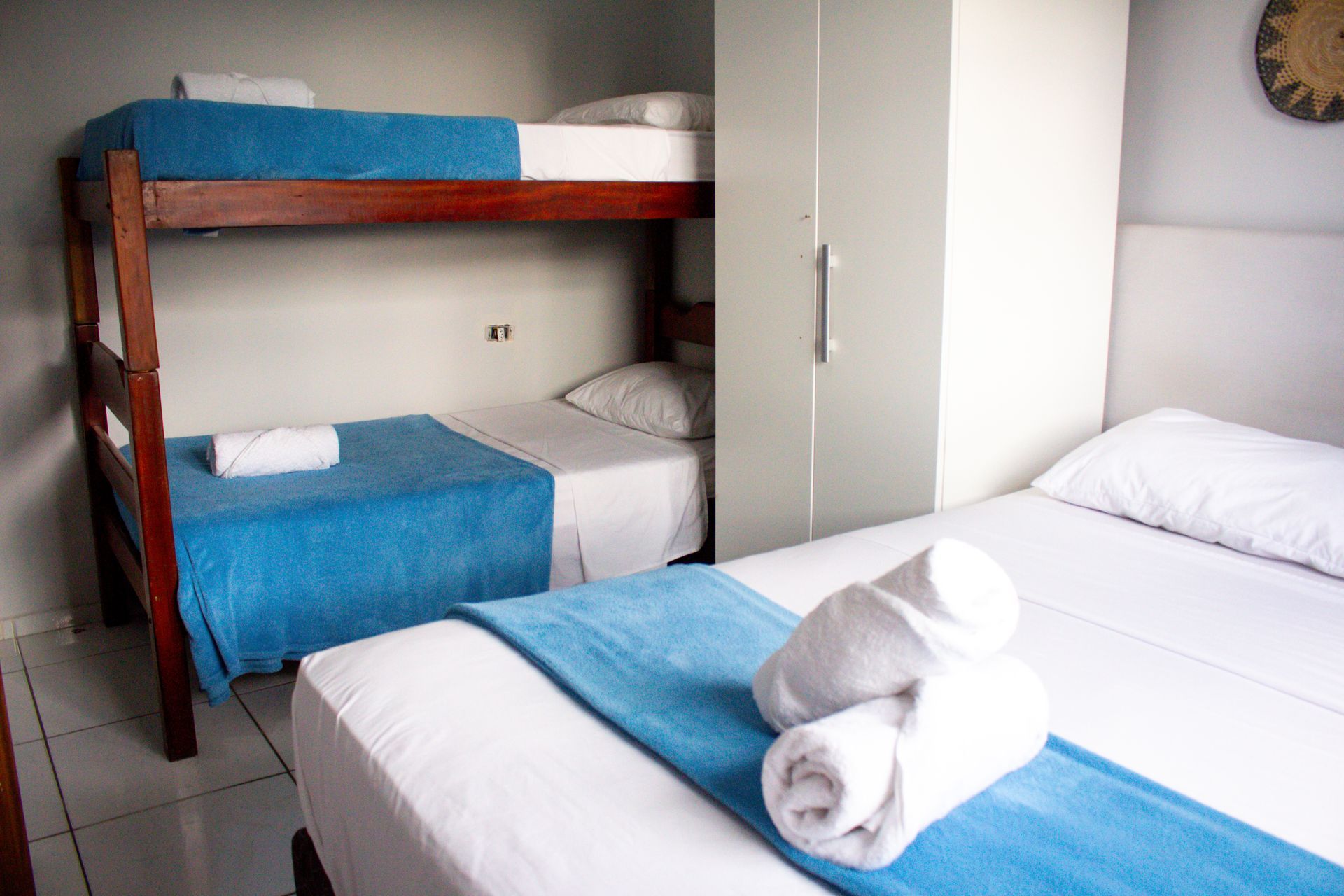 Ideal para pequenos grupos ou famílias, o Apartamento quádruplo oferece conforto e praticidade em um ambiente climatizado com ar-condicionado e TV de tela plana.