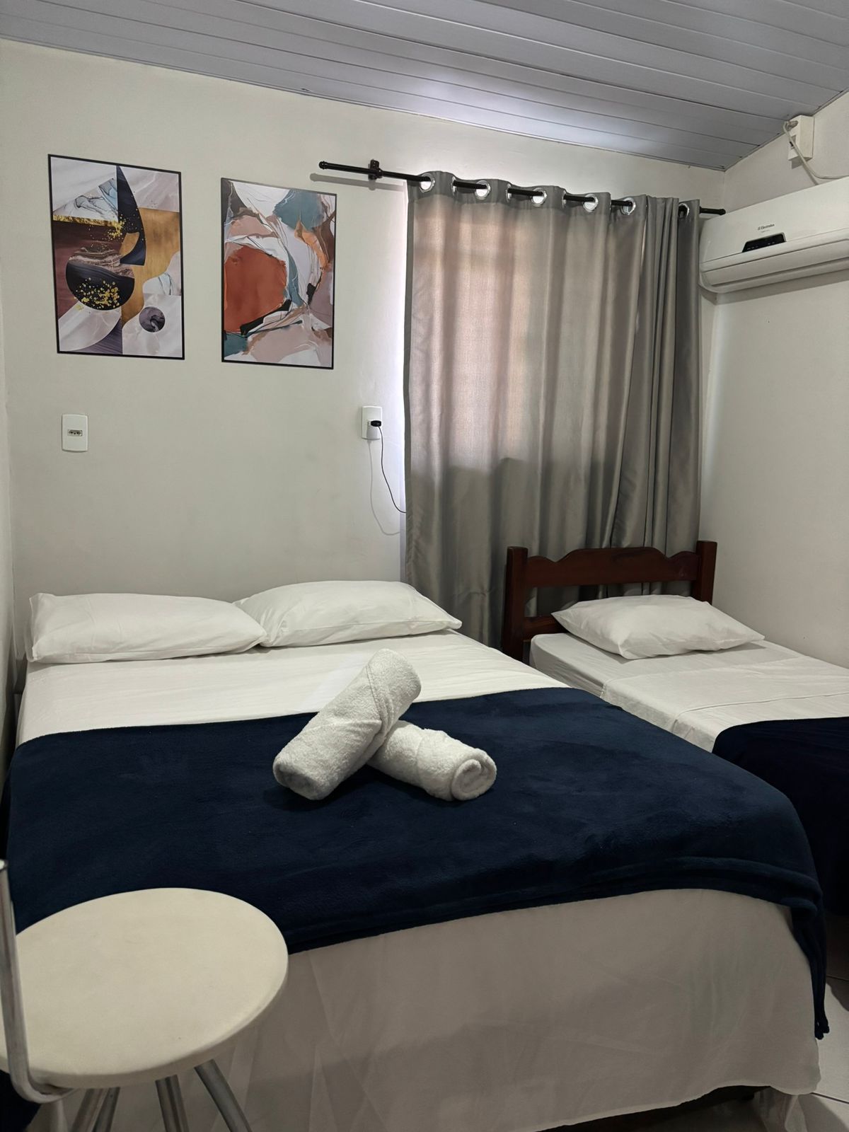 A acomodação dispõe de banheiro privativo equipado com toalhas e papel higiênico, garantindo comodidade durante toda a estadia. Ideal para quem deseja aproveitar, simplicidade e excelente custo-benefício.